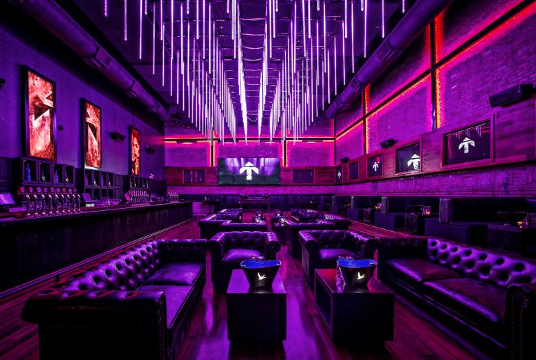 Design inspired by London’s urban tunnels, travel through an industrial corridor illuminated by a backlit, hand crafted metal gird to the sprawling nightclub space. Featuring lush tufted leather sofas, elevated booth seating for socializing and bottle service. A nightclub full of visual intrigue, Tunnel is lit by programmable LED throughout as well as a twelve panel video matrix.
